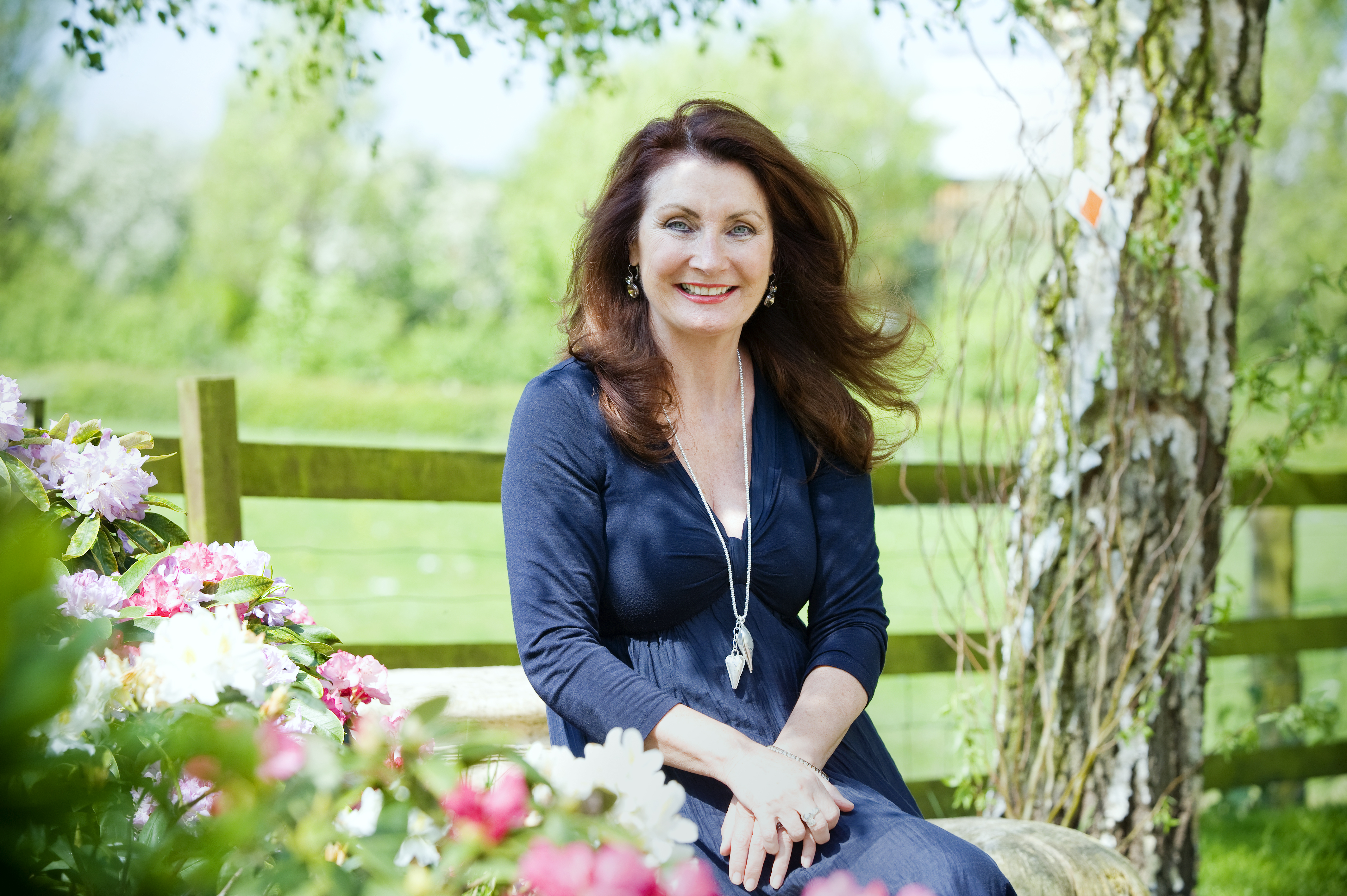 Adrienne in garden. (landscape)