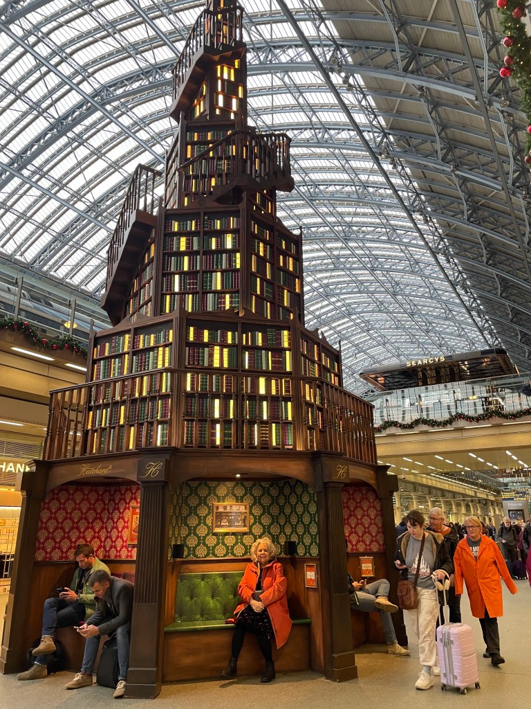 Accompanied by Adrienne Vaughan (who came up with the idea of the RNA Industry Awards when she was editor of Romance Matters ) we soon arrived in London. St Pancras had a wonderfully appropriate Christmas display waiting for us and Adrienne and I felt right at home among all the books.