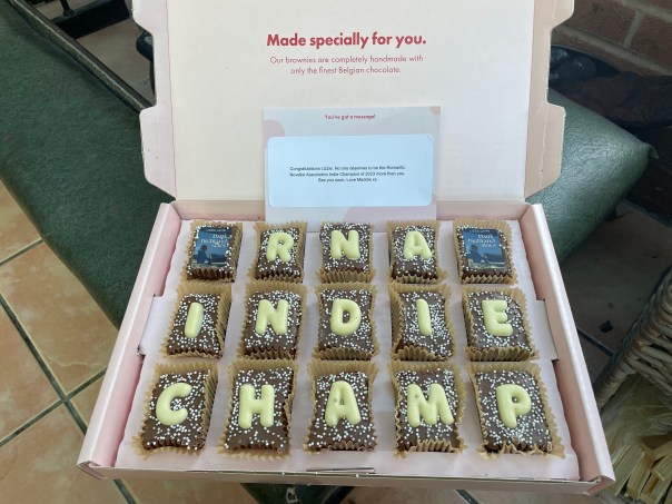 Then, just when I thought life couldn’t get any better, there was a knock on the door a few days later. My husband Dave came through with a parcel and asked, “Are you expecting anything from Amazon?” I opened the package to discover that my dear writer friend Madalyn Morgan – who has just had ten of her novels published by Storm Publishing – had generously sent these brownies. In case, you’re wondering, they are delicious. Thank you, Maddy. It seemed a shame to eat them, but we did.